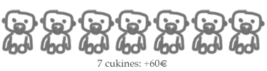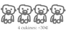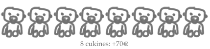 (Ejemplo: Si quieres 3 cukines en tu cuadro, selecciona la tercera opción. El coste será de 70€ + 10€ del segundo cukin + 10€ del tercer cukin. En total, 90€)
